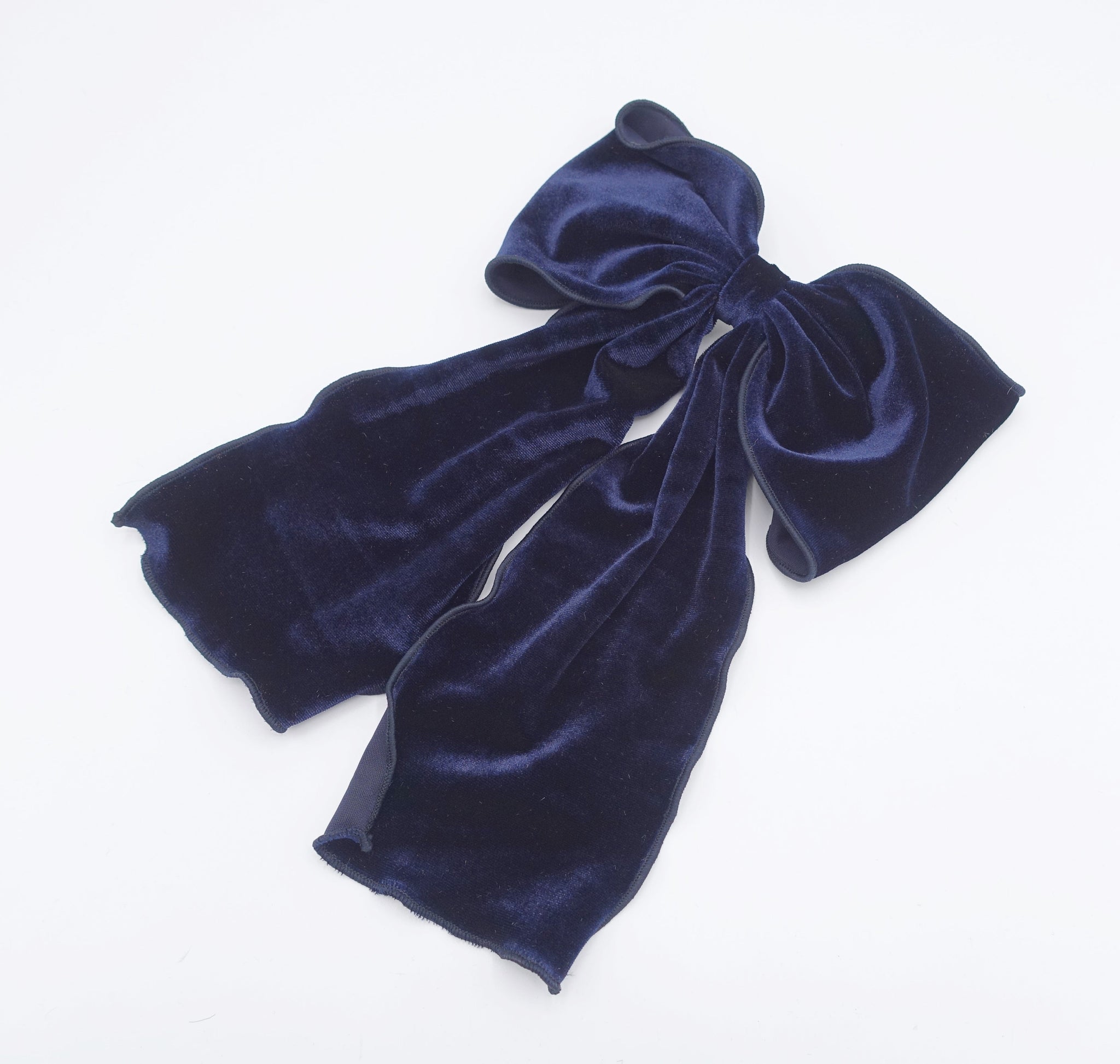 veryshine.com Barrette (Bow) Navy velvet lettuce hem layered hair bow for women