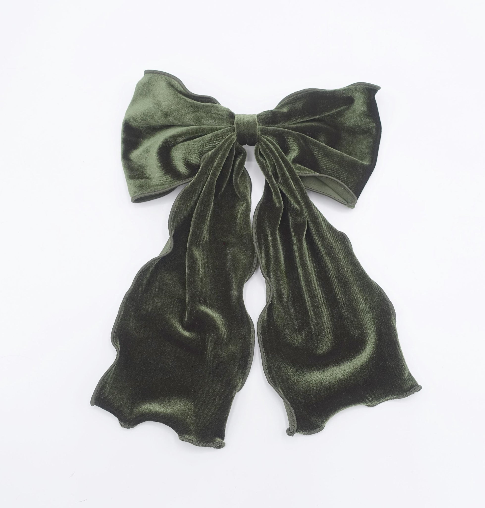 veryshine.com Barrette (Bow) Olive green velvet lettuce hem layered hair bow for women