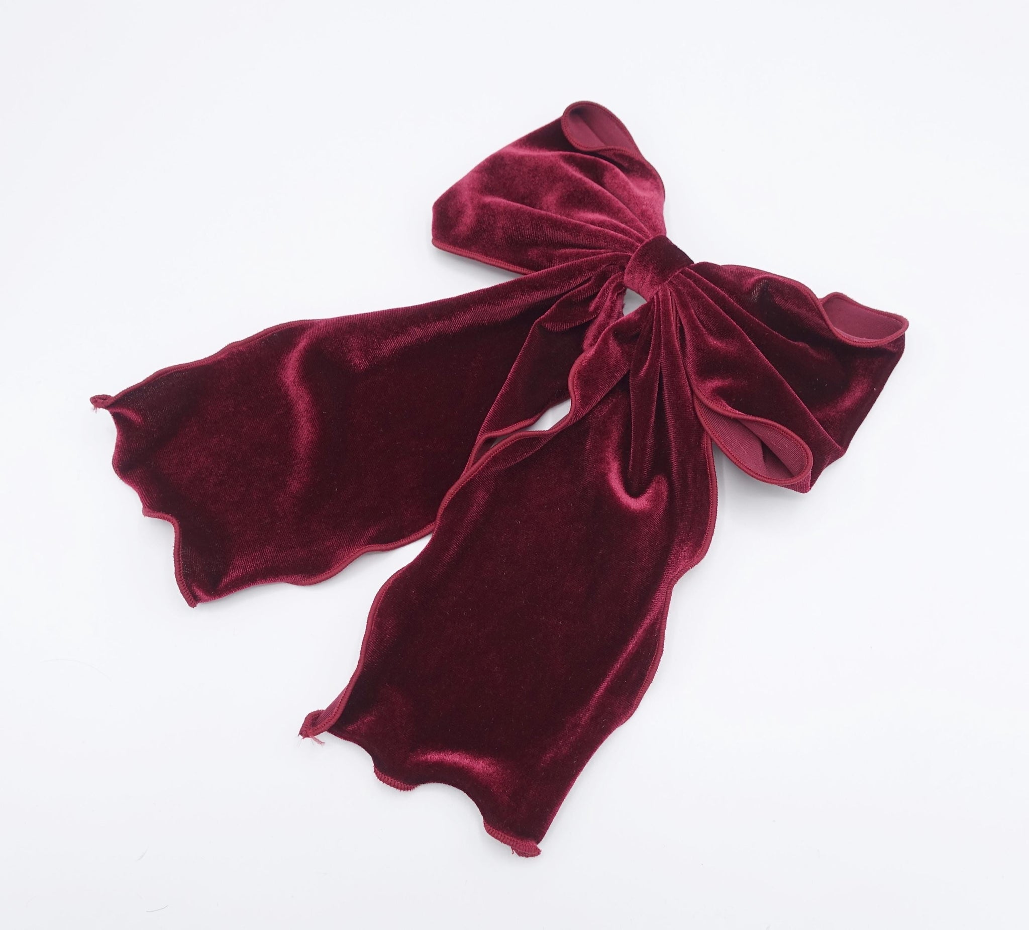 veryshine.com Barrette (Bow) Red wine velvet lettuce hem layered hair bow for women