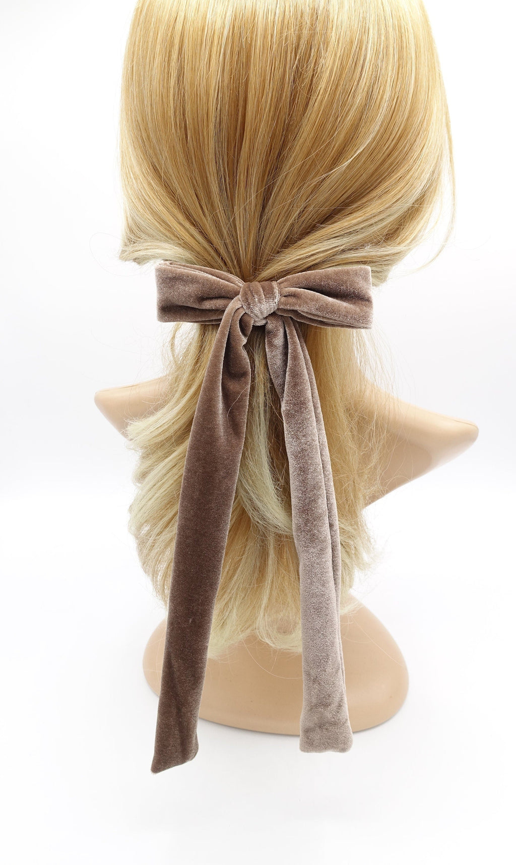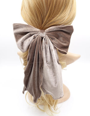 veryshine.com Barrette (Bow) Taupe velvet lettuce hem layered hair bow for women