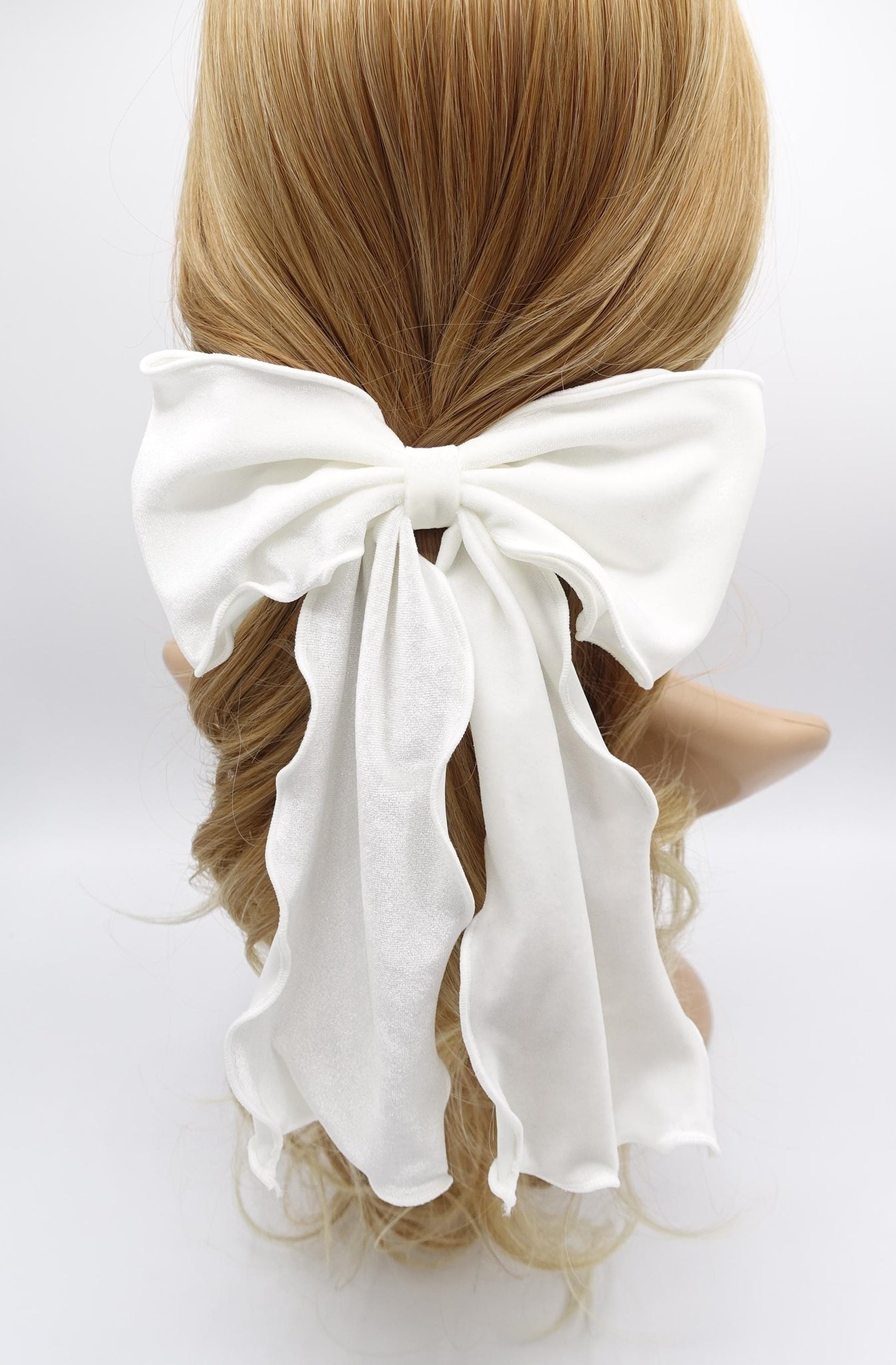 veryshine.com Barrette (Bow) White velvet lettuce hem layered hair bow for women