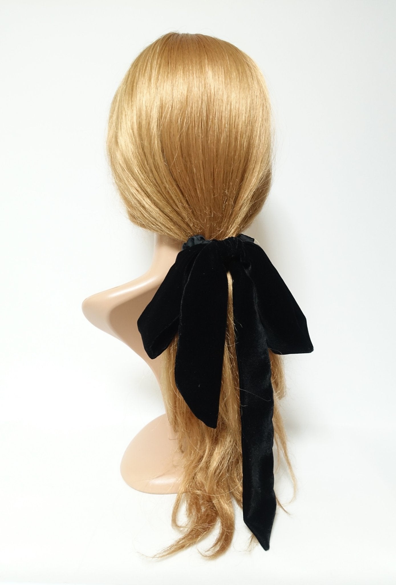 Silk Velvet Bow Scrunchie: Long Strap Satin Hair Tie