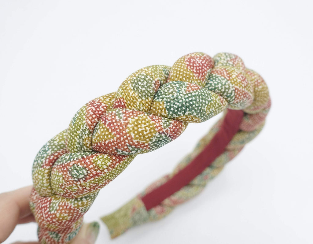 silk braided headband floral print padded hairband luxury hair accessory for women-VS202107