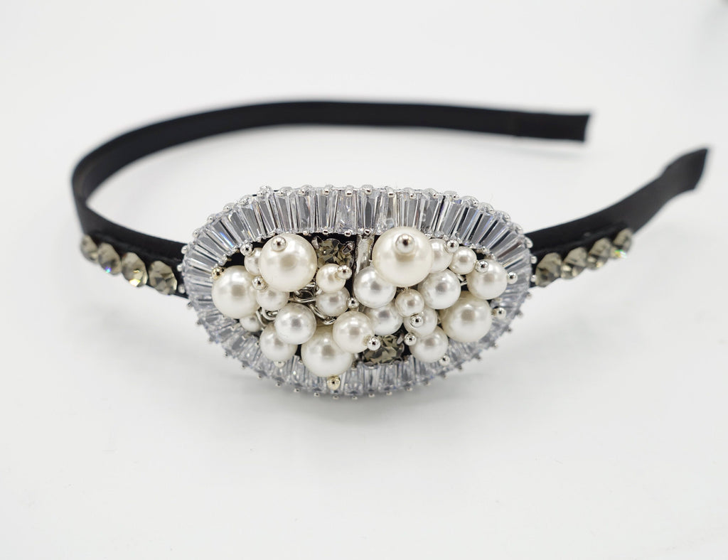 bling headband pearl glass rhinestone embellished oval thin hairband women hair accessory