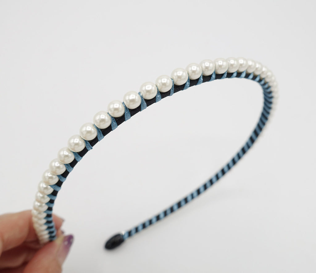 pearl embellished headband simple one row thread wrap hairband