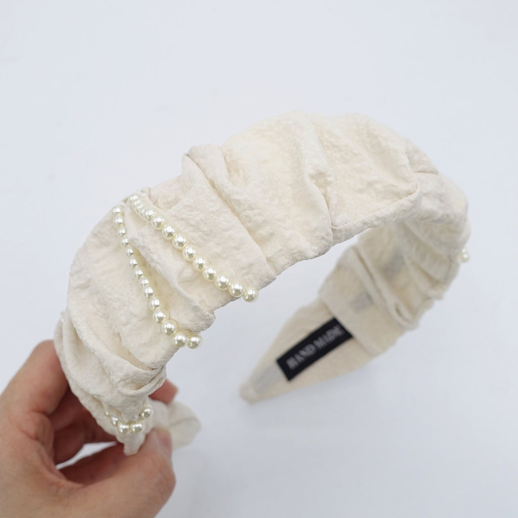 pleated headband, pearl ornamented headband, crinkled hair accessory for women