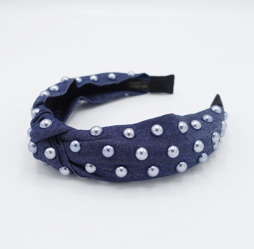 denim pearl embellished headband