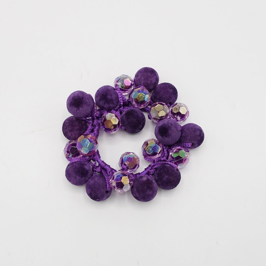 velvet ball beaded mini disco ball hair elastic ponytail holder