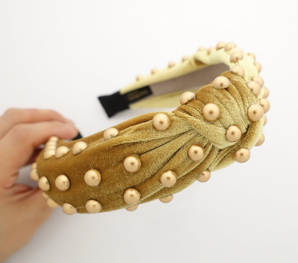 pearl headband embellished velvet knotted women hairband densely attached pearl hair accessory