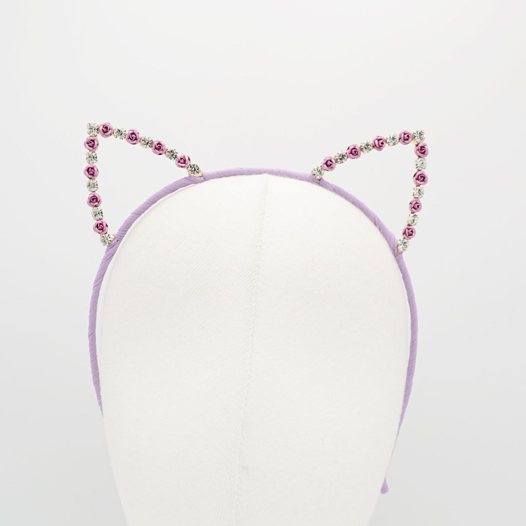 Rose Rhinestone Cat Ear Headband: Crystal Hairband for Women
