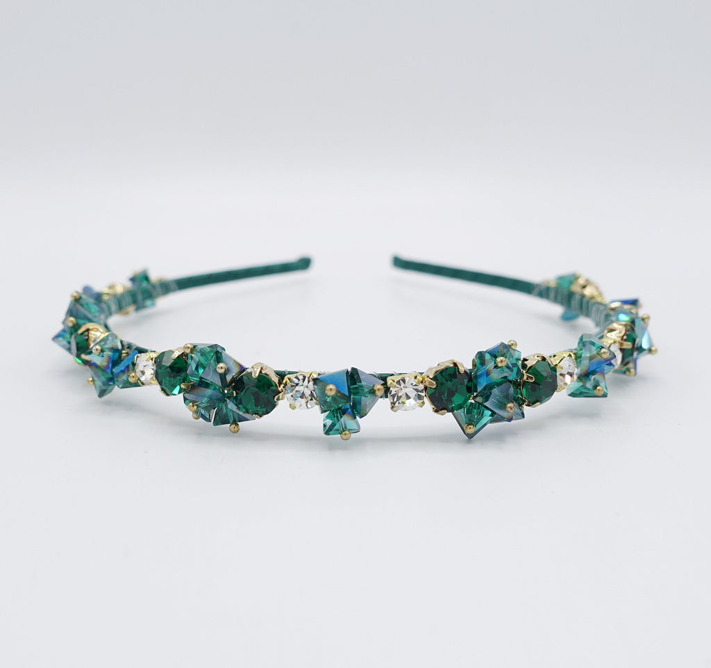 luxury crystal rhinestone headband polyhedron jewel beaded hairband for women