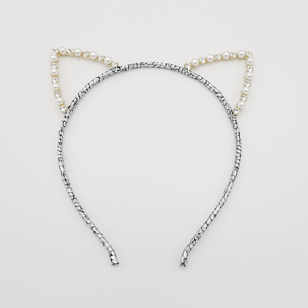 cat ear pearl rhinestone embellished headband special event crystal hairband for women
