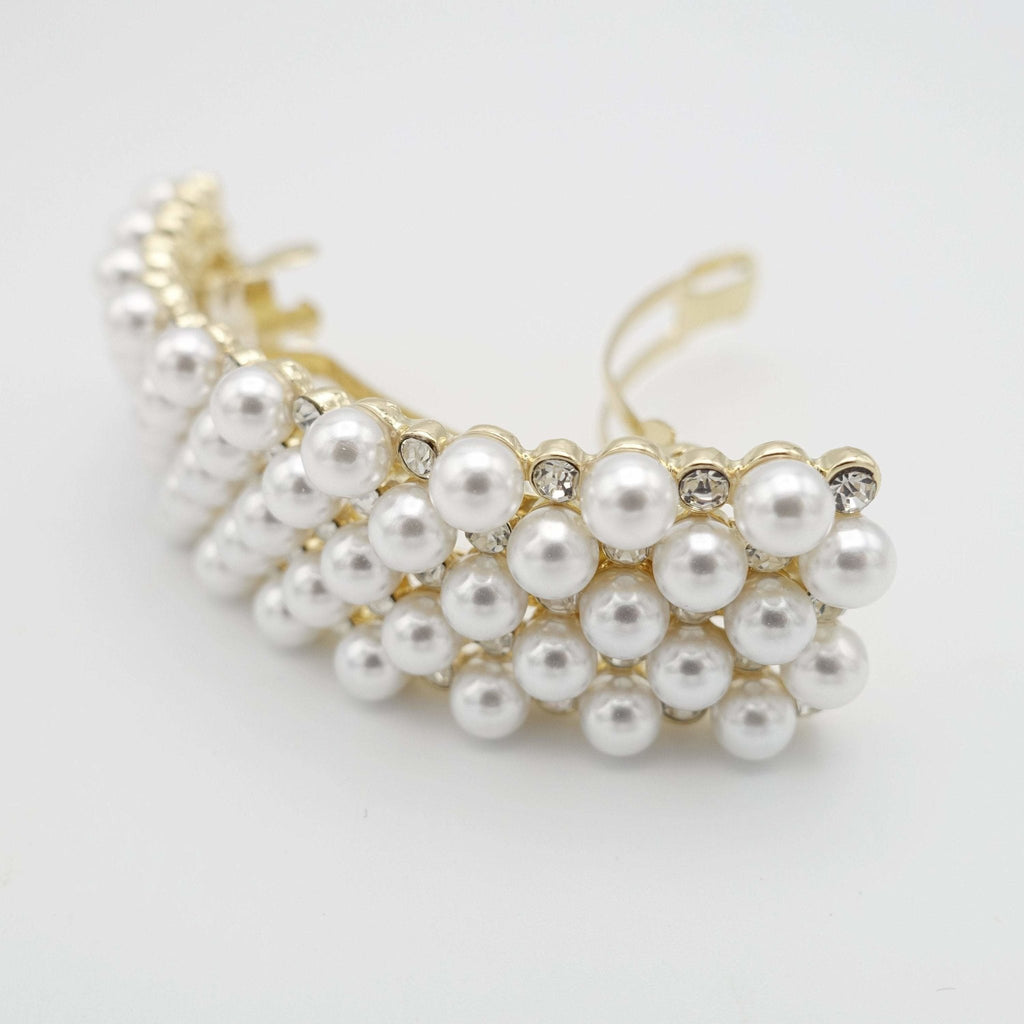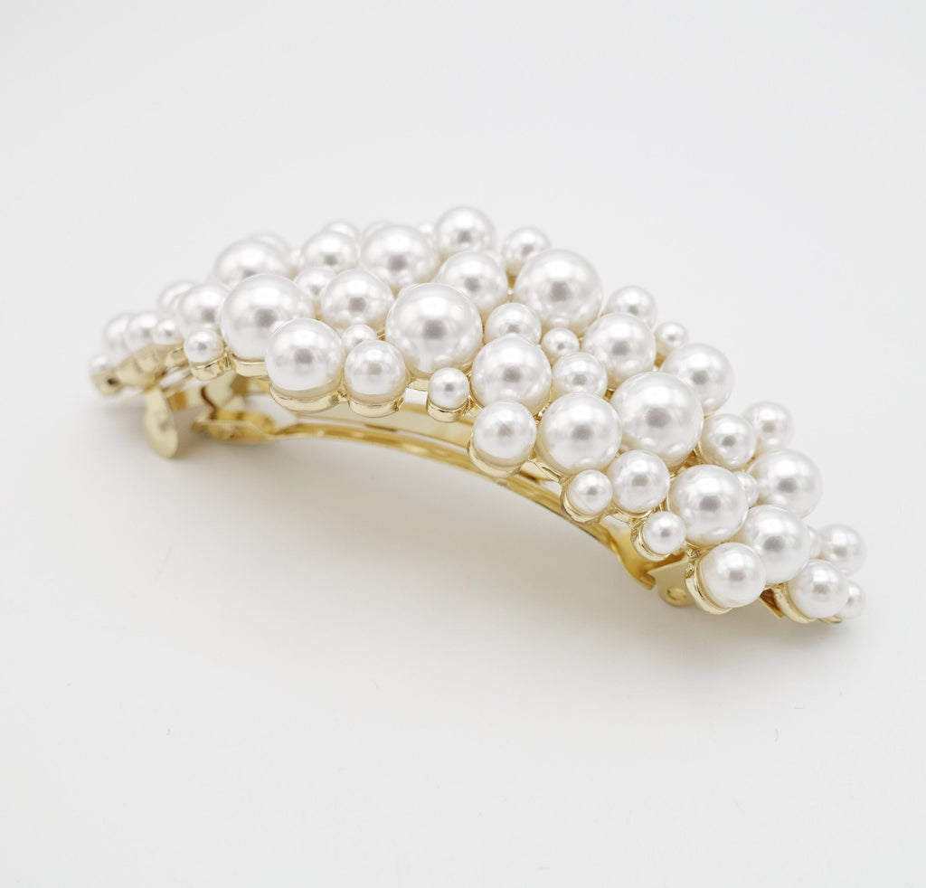 multi size pearl embellished curved french barrette elegant women hair accessory