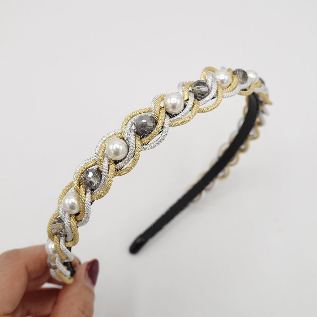pearl glass beads embellished chain headband thin hairband hair accessory for women