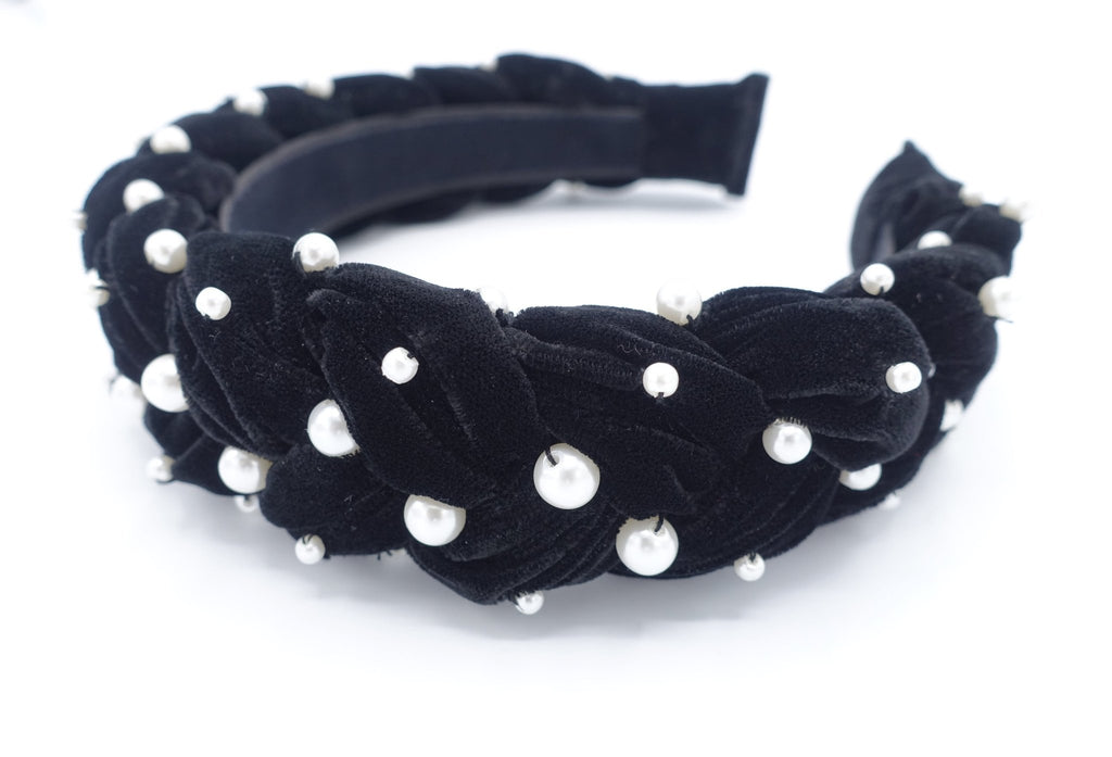 Handmade Pearl Velvet Braided Headband: Luxury Hair Accessory