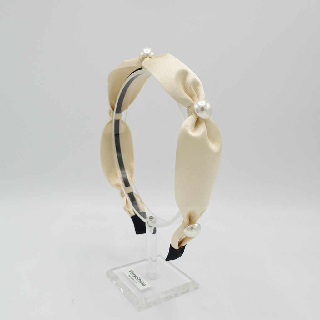 satin pearl tie headband