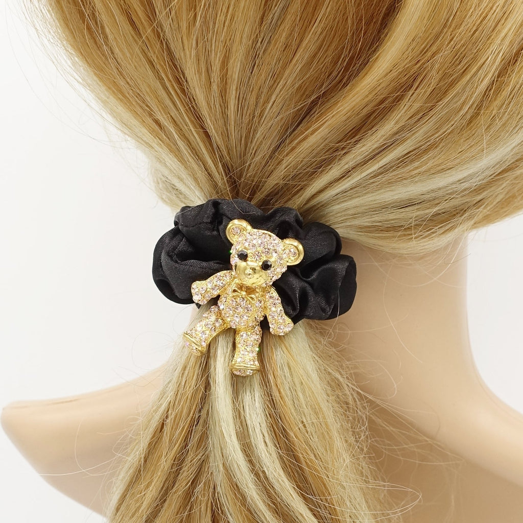 rhinestone bear hair elastic black satin scrunchies