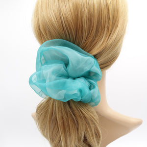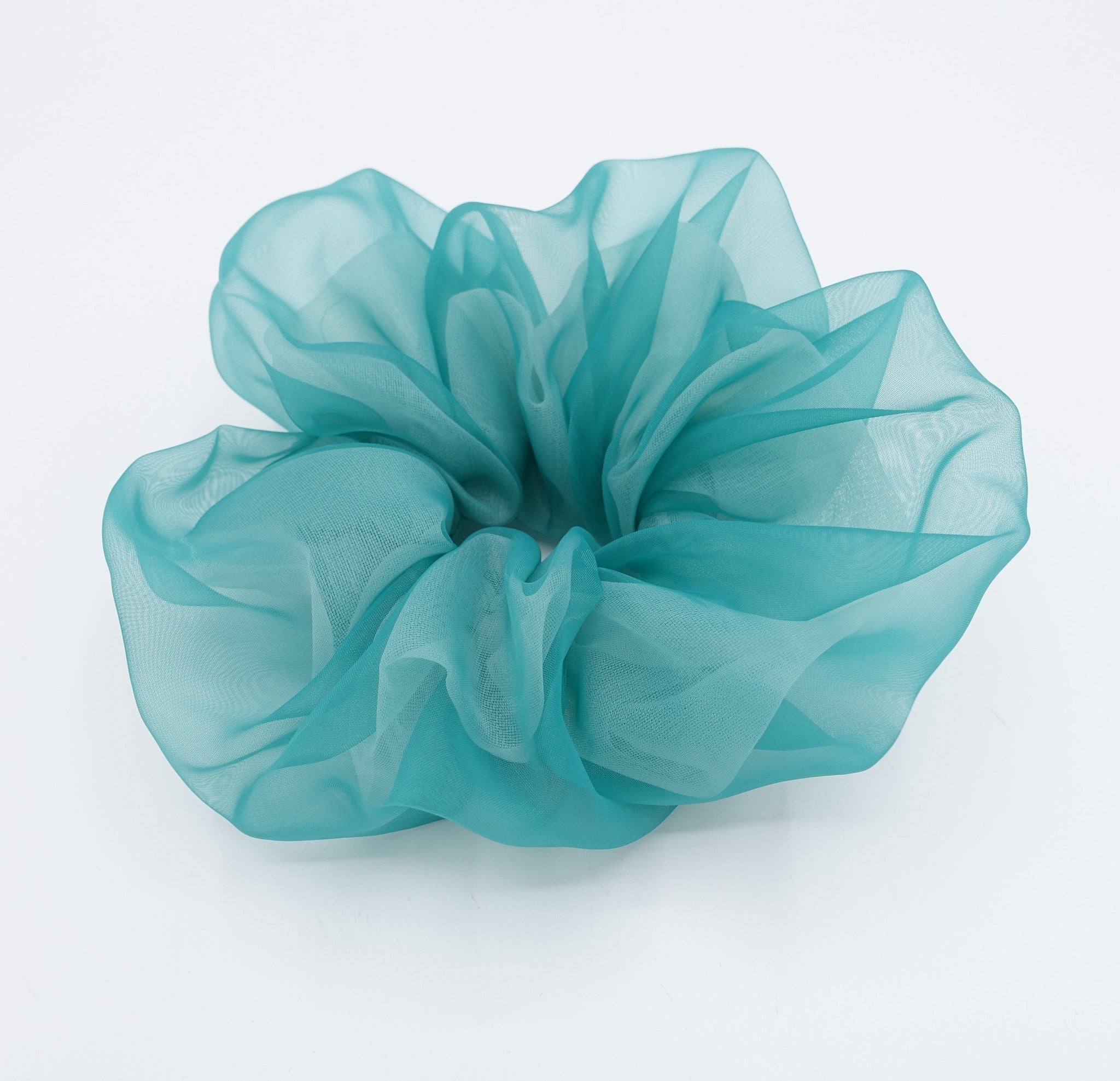 veryshine.com Scrunchies Blue green organza scrunchies, see through hair scrunchie, double scrunchies for women