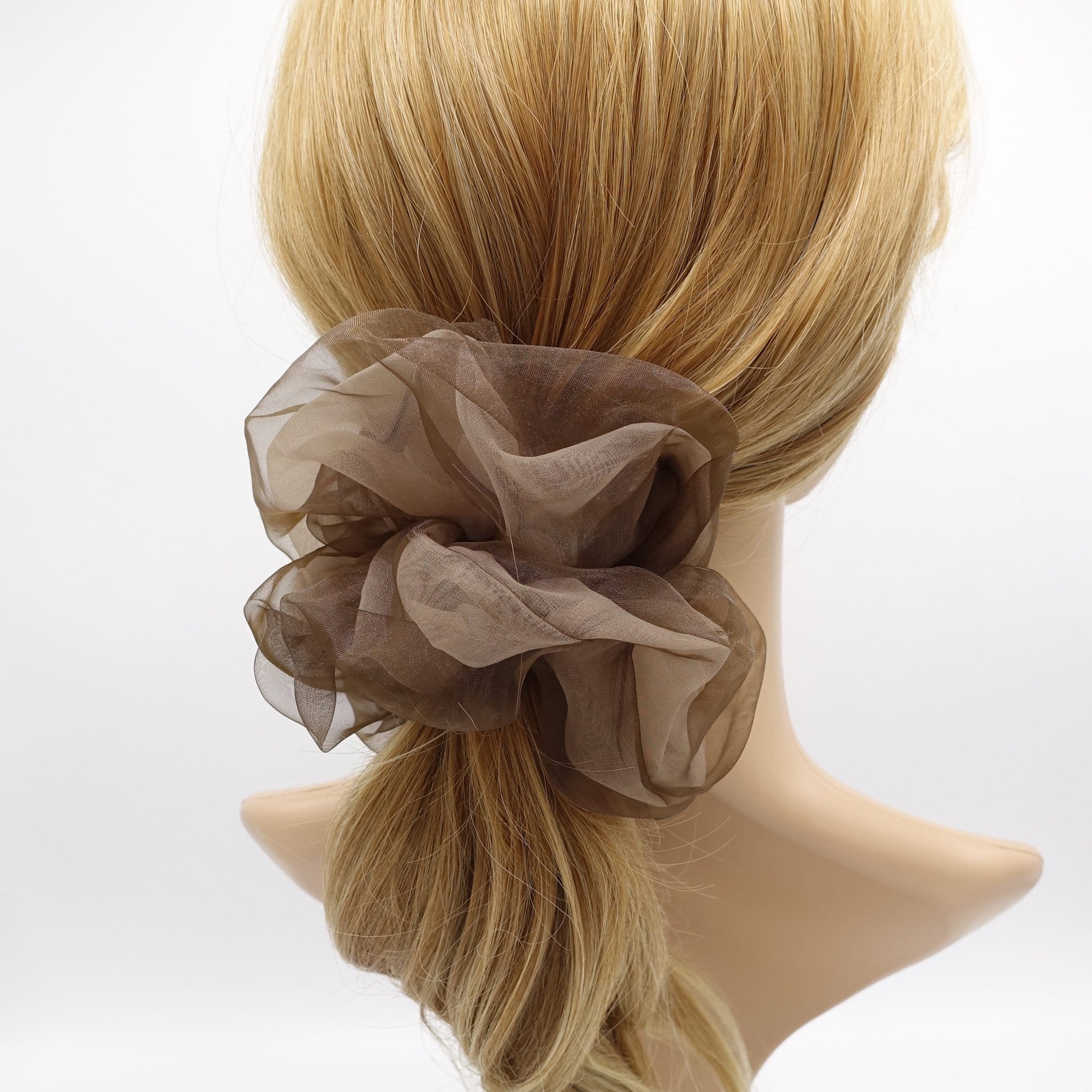 veryshine.com Scrunchies Brown organza scrunchies, see through hair scrunchie, double scrunchies for women