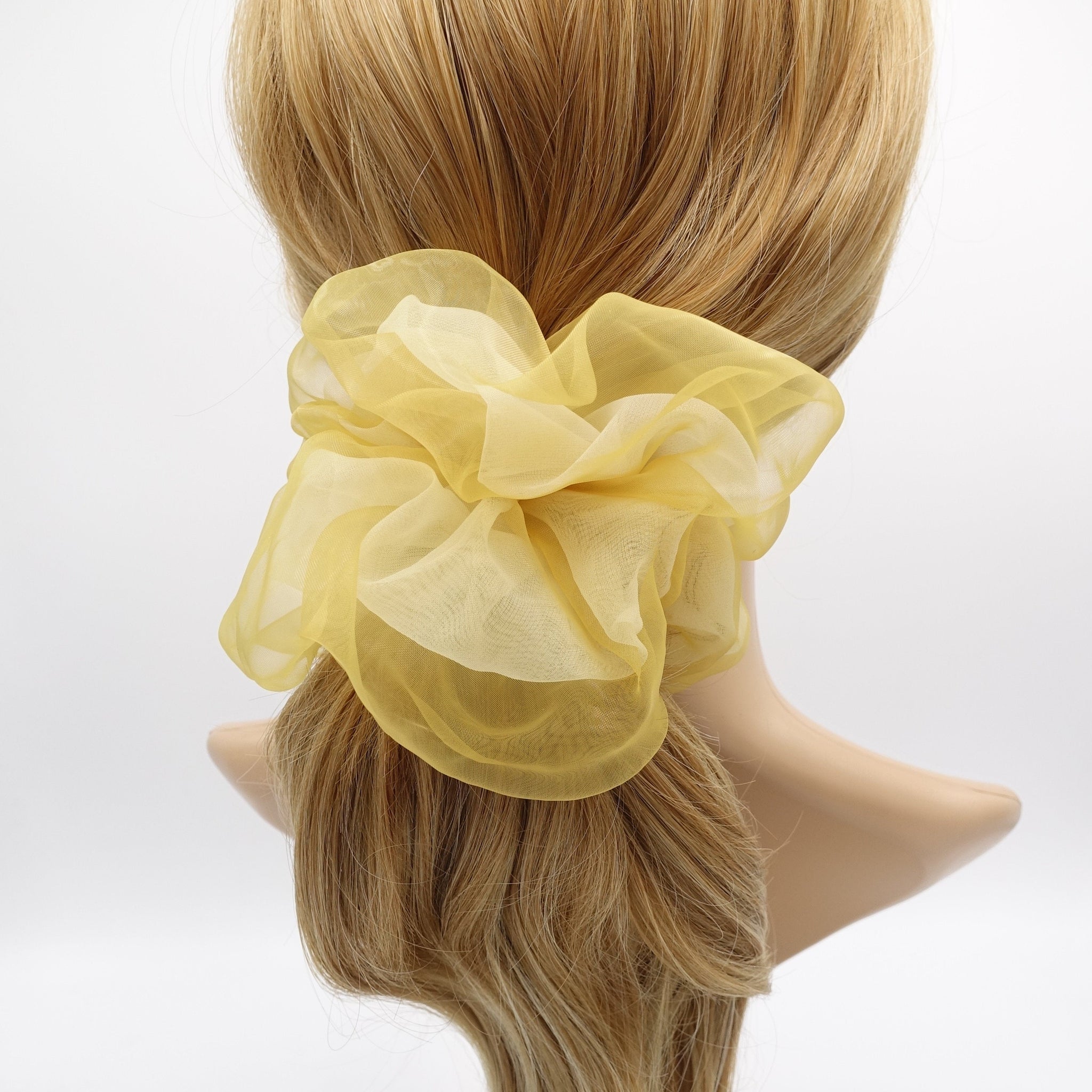 veryshine.com Scrunchies Mustard organza scrunchies, see through hair scrunchie, double scrunchies for women