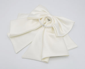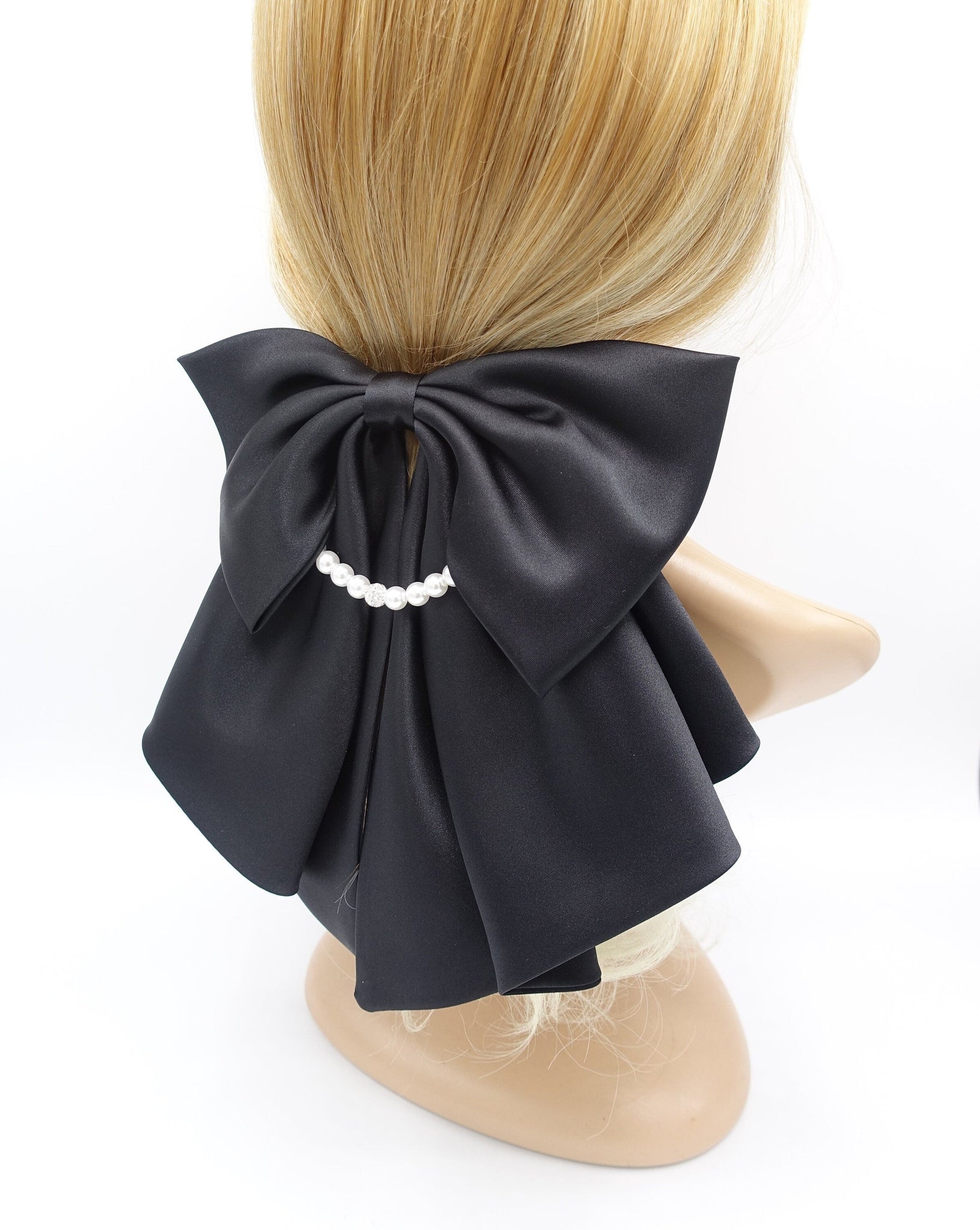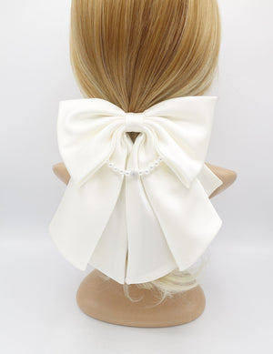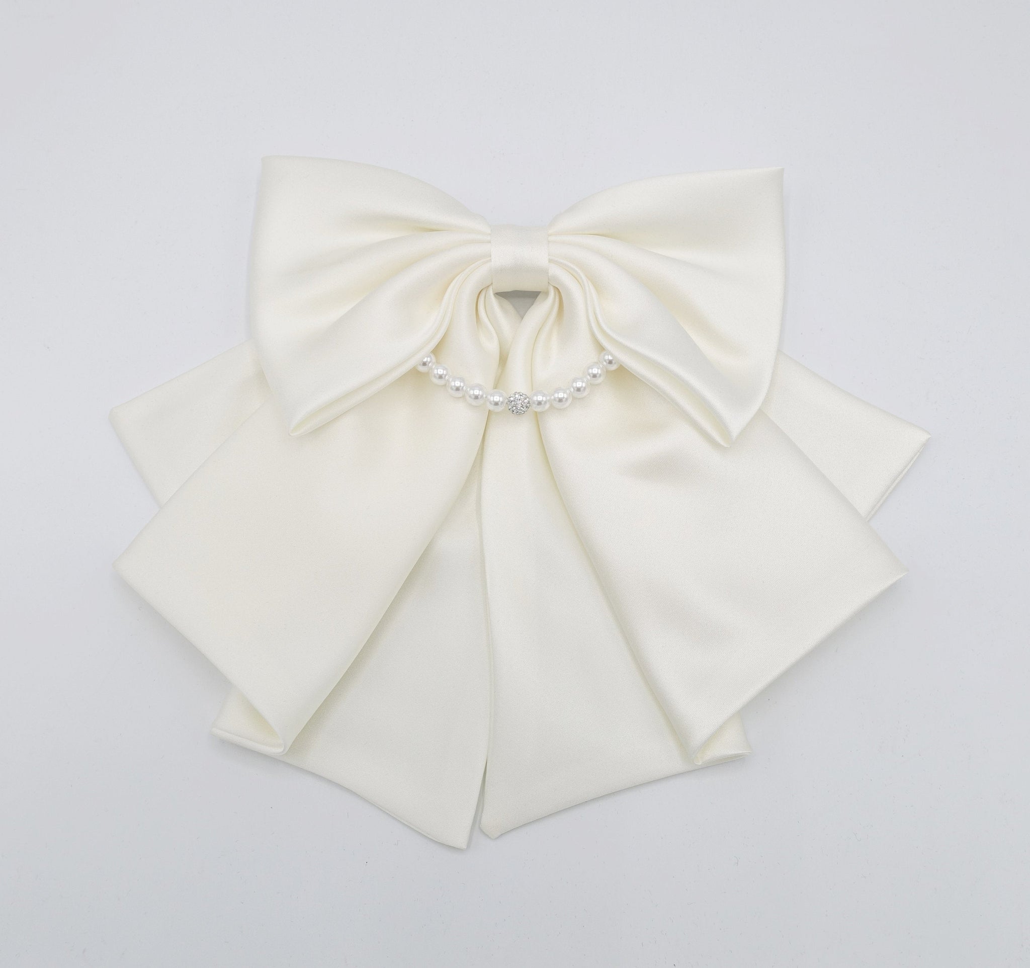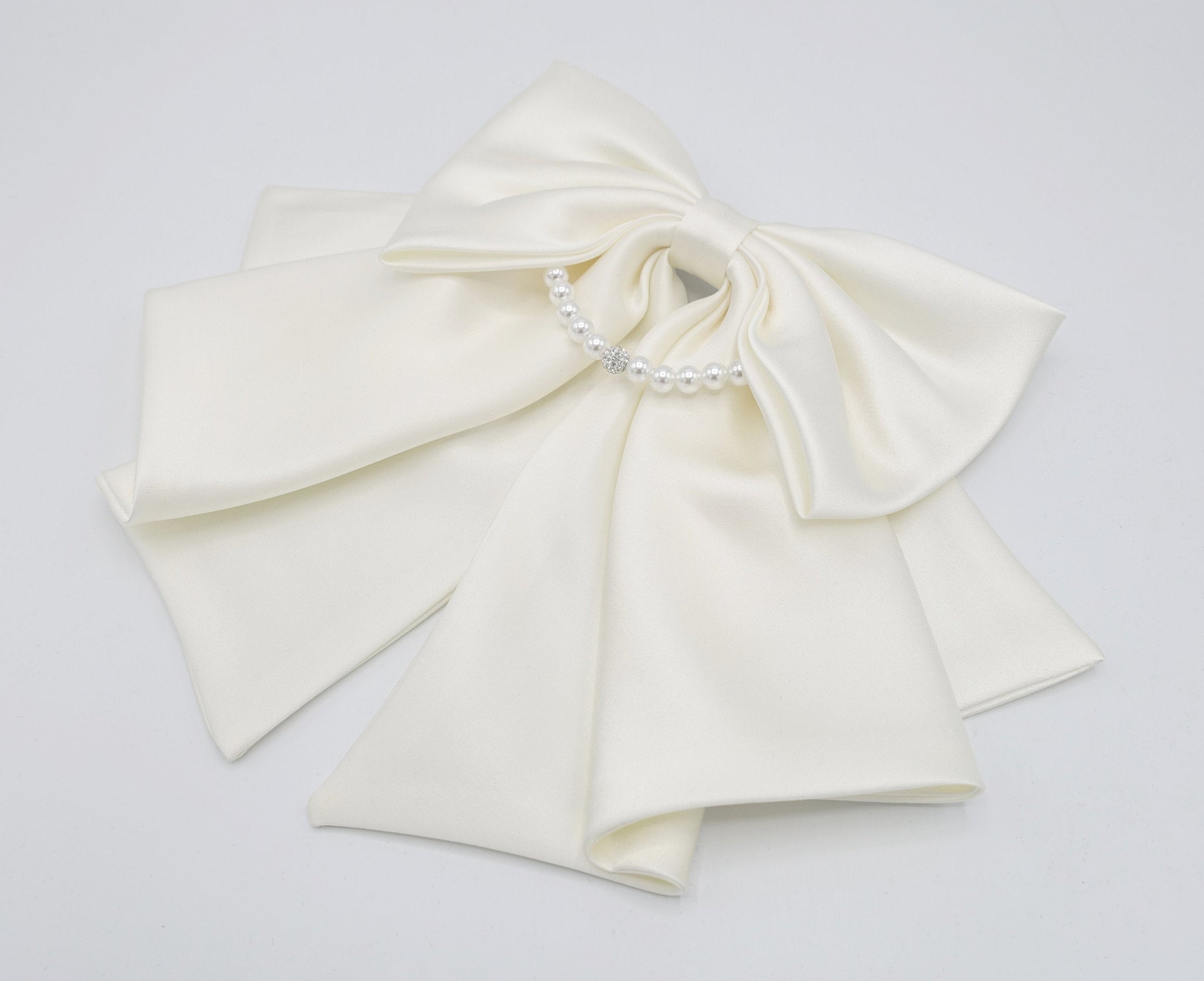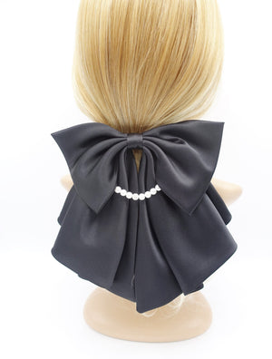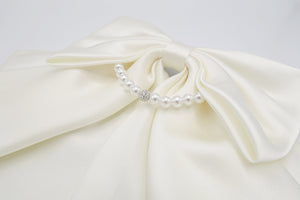 Satin Hair Bow with Pearl Necklace Detail - Elegant Women's Hair Accessory