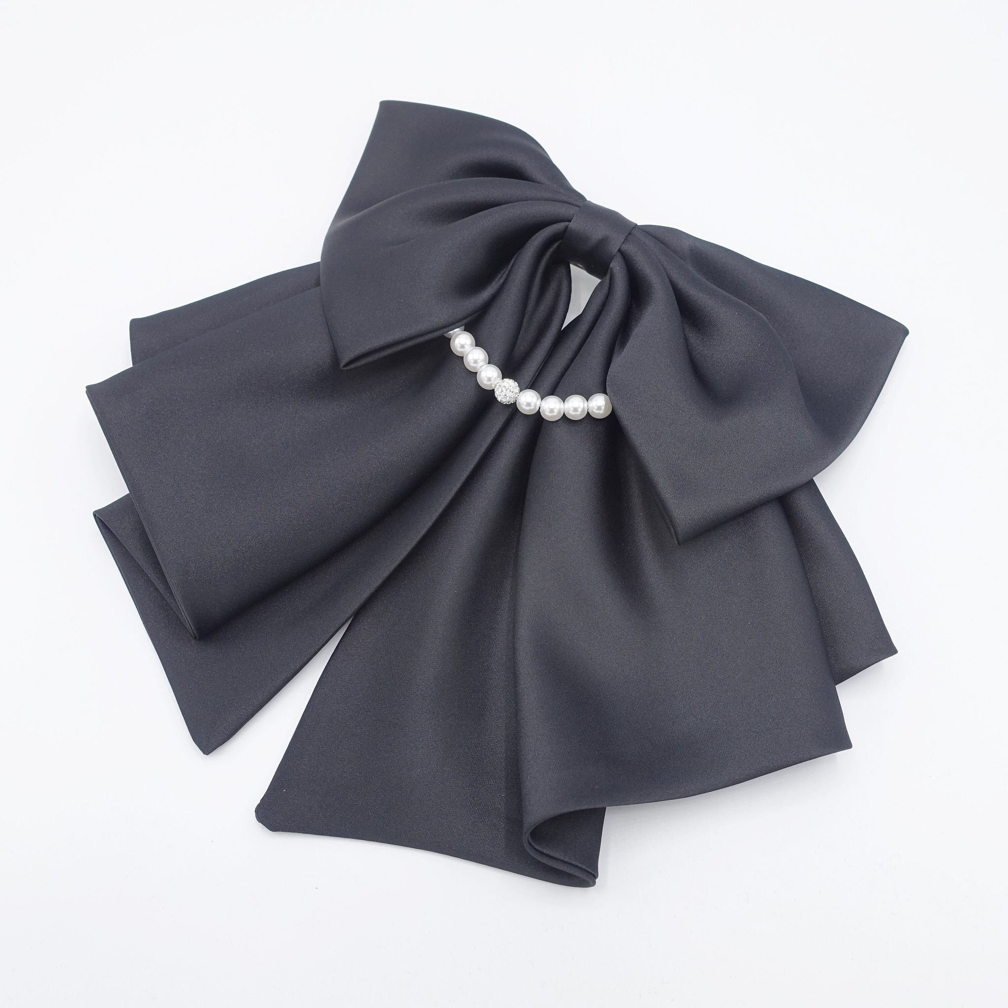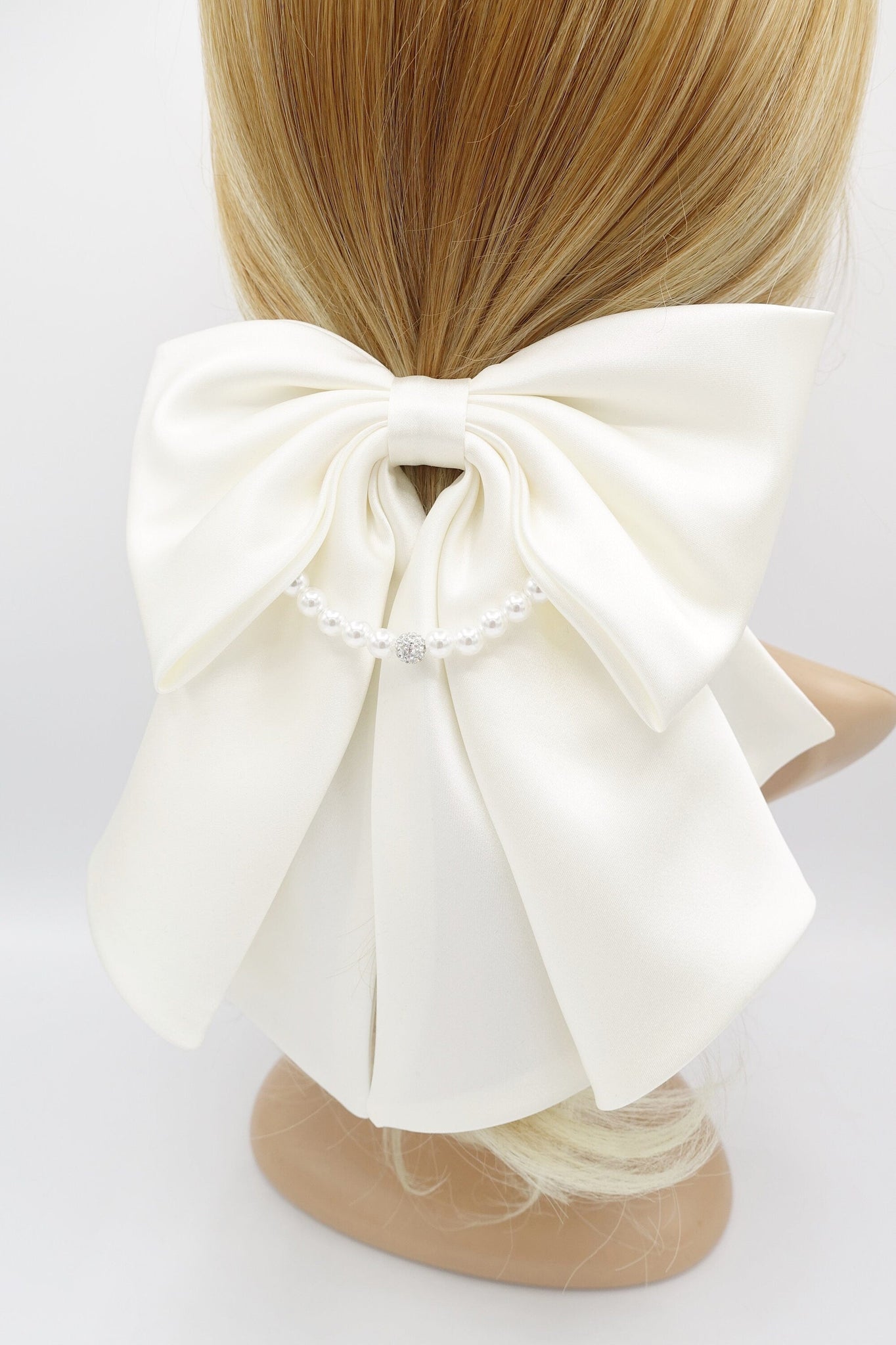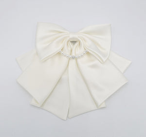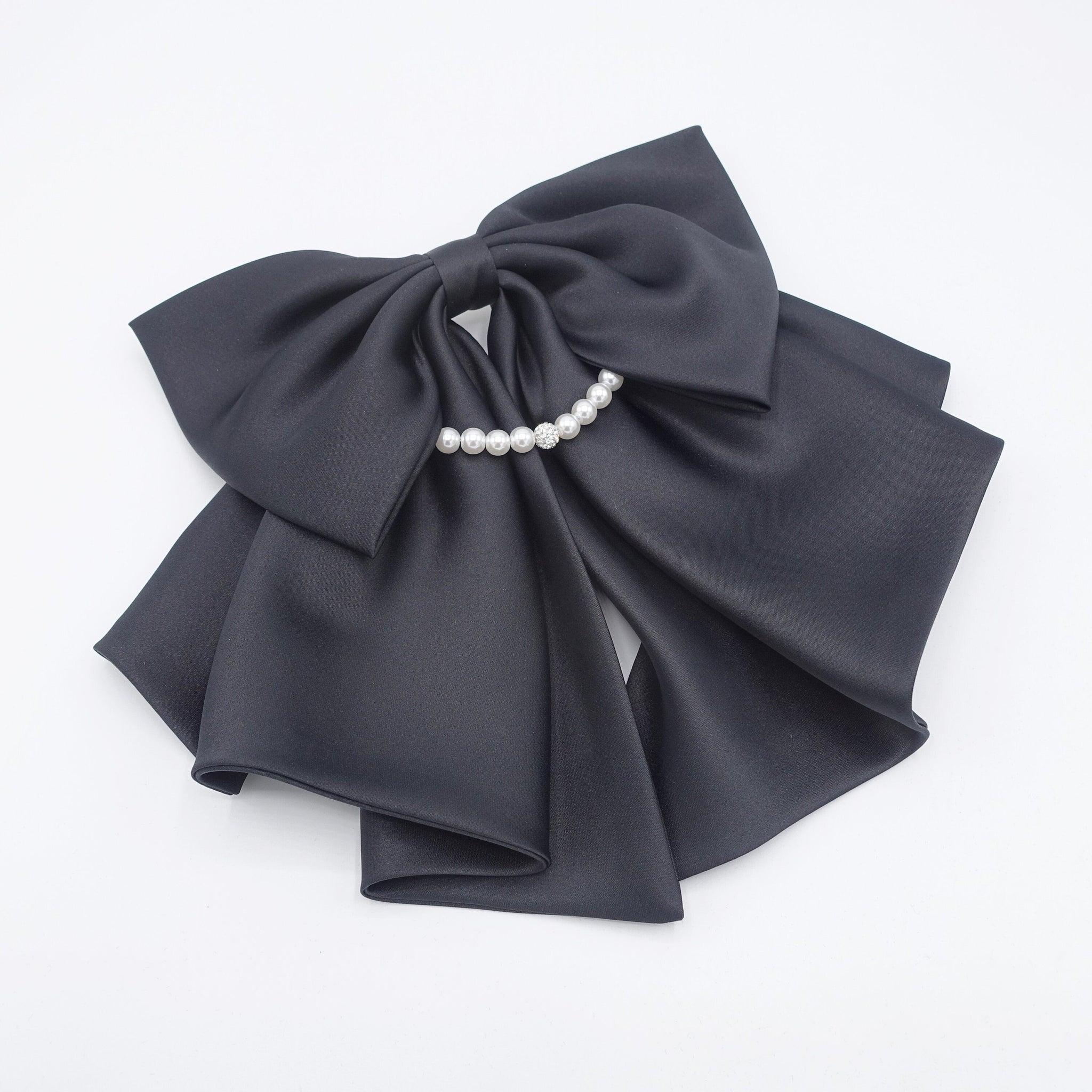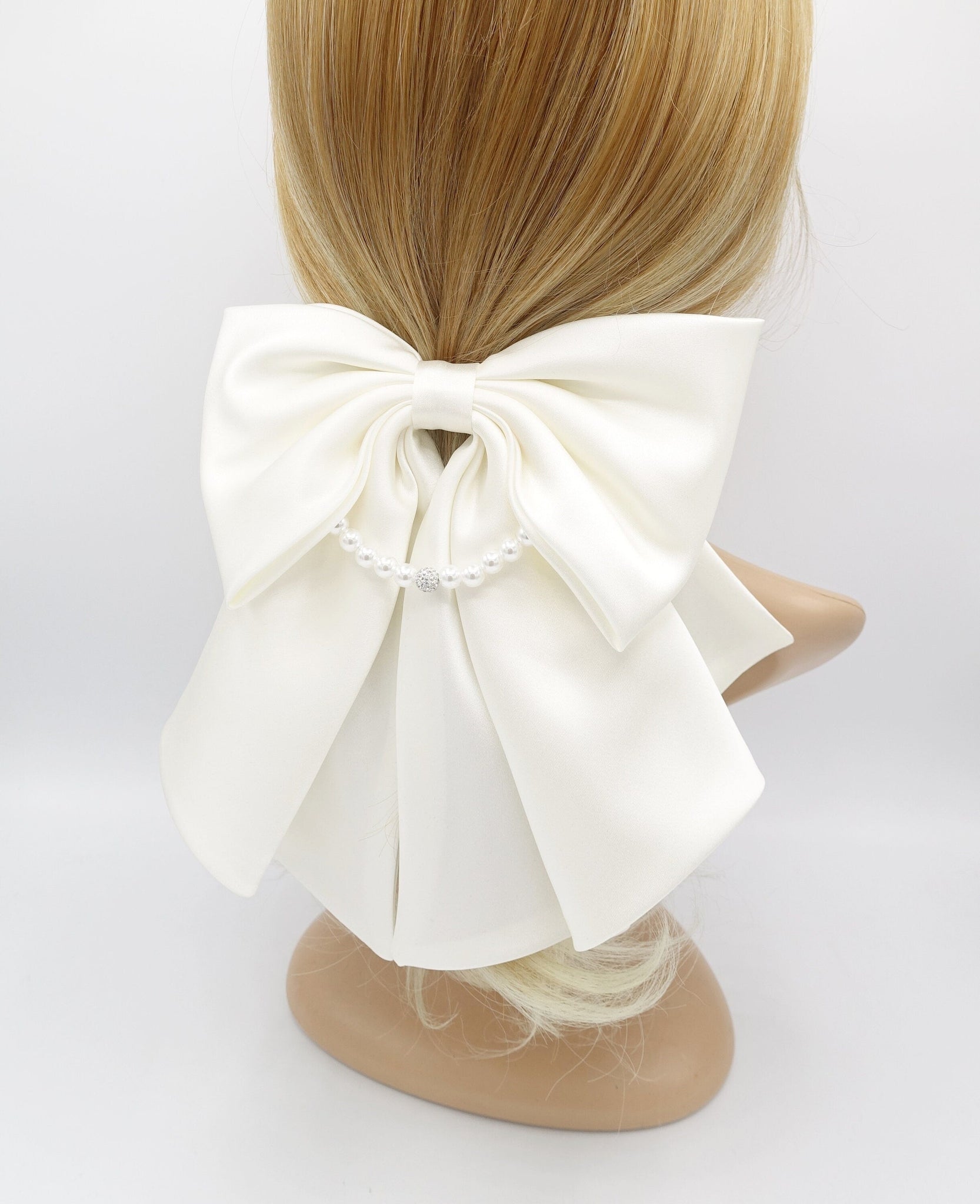 Satin Hair Bow with Pearl Necklace Detail - Elegant Women's Hair Accessory