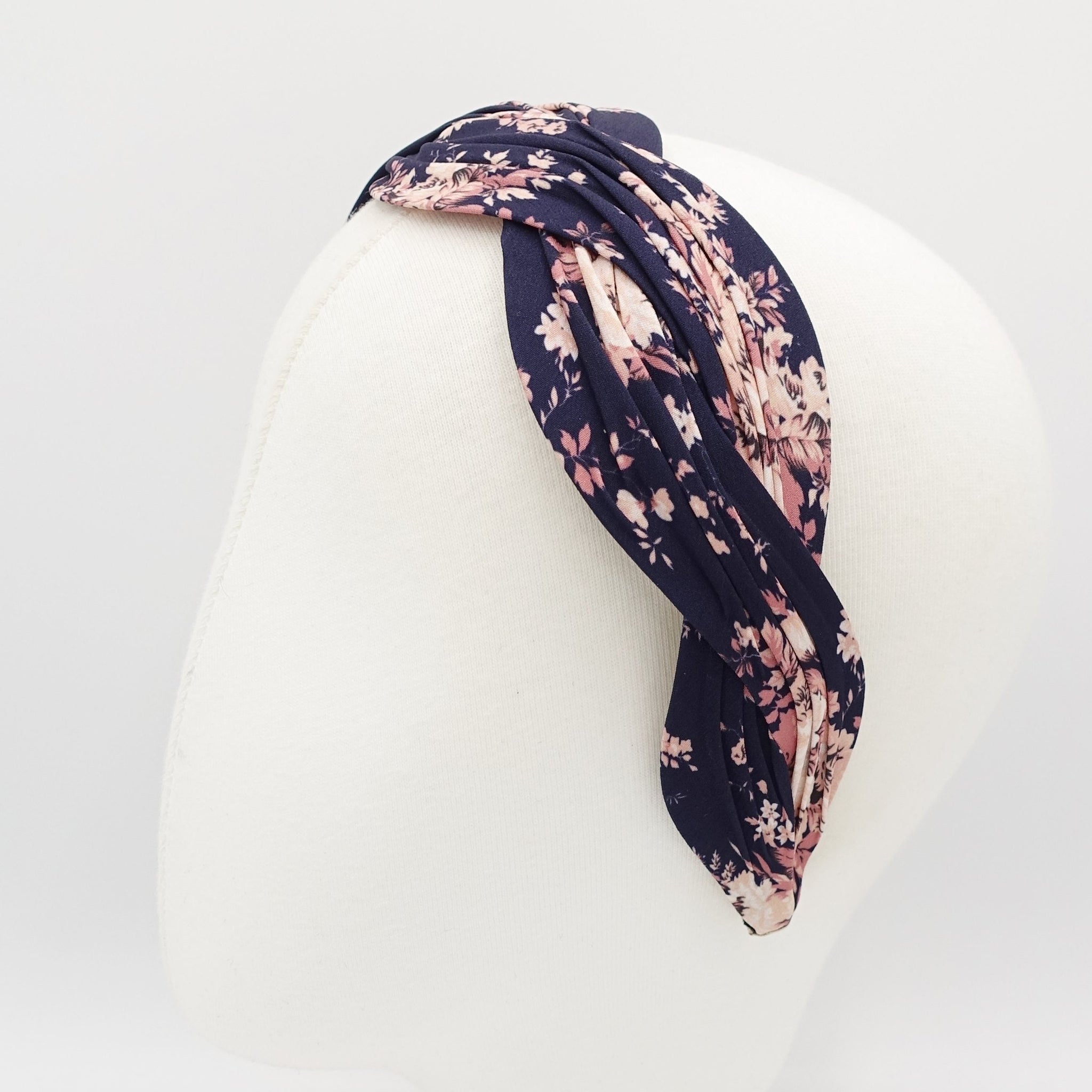 floral print pleated wave headband stylish cross hairband women hair a – veryshine.com