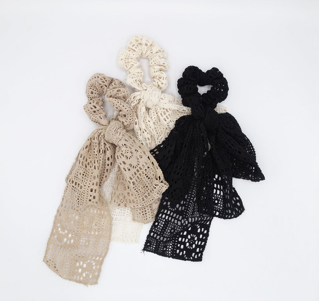 Chiffon Scrunchie with Floral Lace Edge: Feminine Hair Tie
