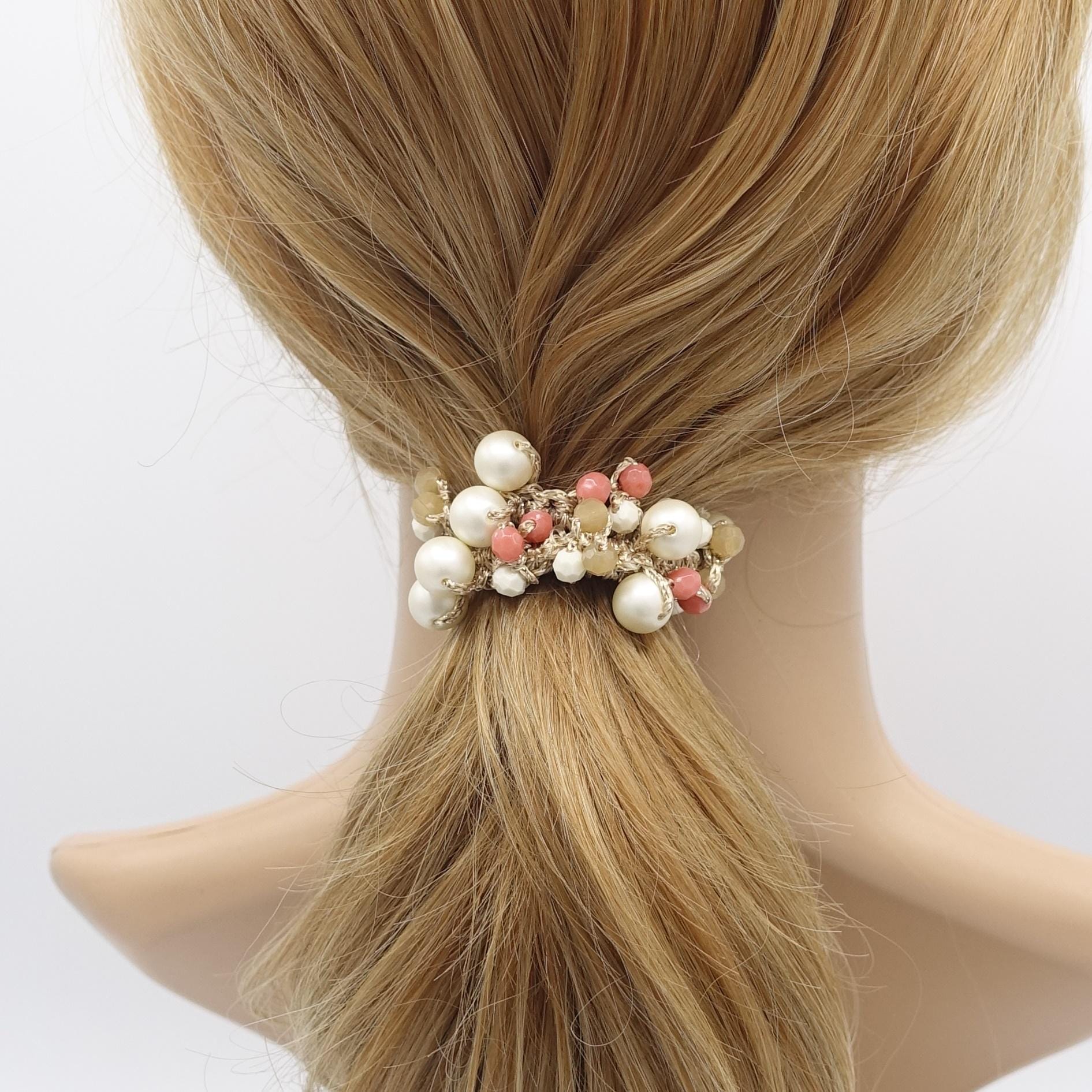 veryshine.com Ponytail holders Coral acrylic beaded scrunchies, cute scrunchies for women