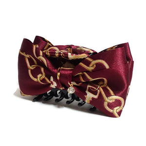veryshine.com Hair Claw Burgundy Handmade Chain Print Satin Hair Bow Hair Claw Clip Women Fashion Hair Accessories