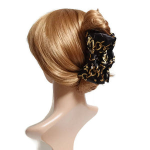 This shiny, satin bow claw clip has a chic, chain print design that looks great with a variety of hairstyles. The shiny satin material is soft and comfortable to wear. This hair clip is great for ladies who want to enhance the look of their hairstyles.