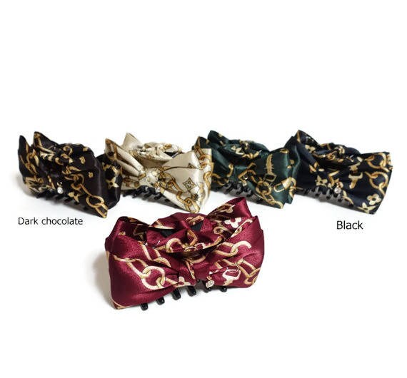Handmade Chain Print Satin Hair Bow Hair Claw Clip Women – veryshine.com